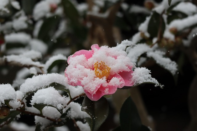 葉も花も 初雪被り 咲く椿 ![]() |
